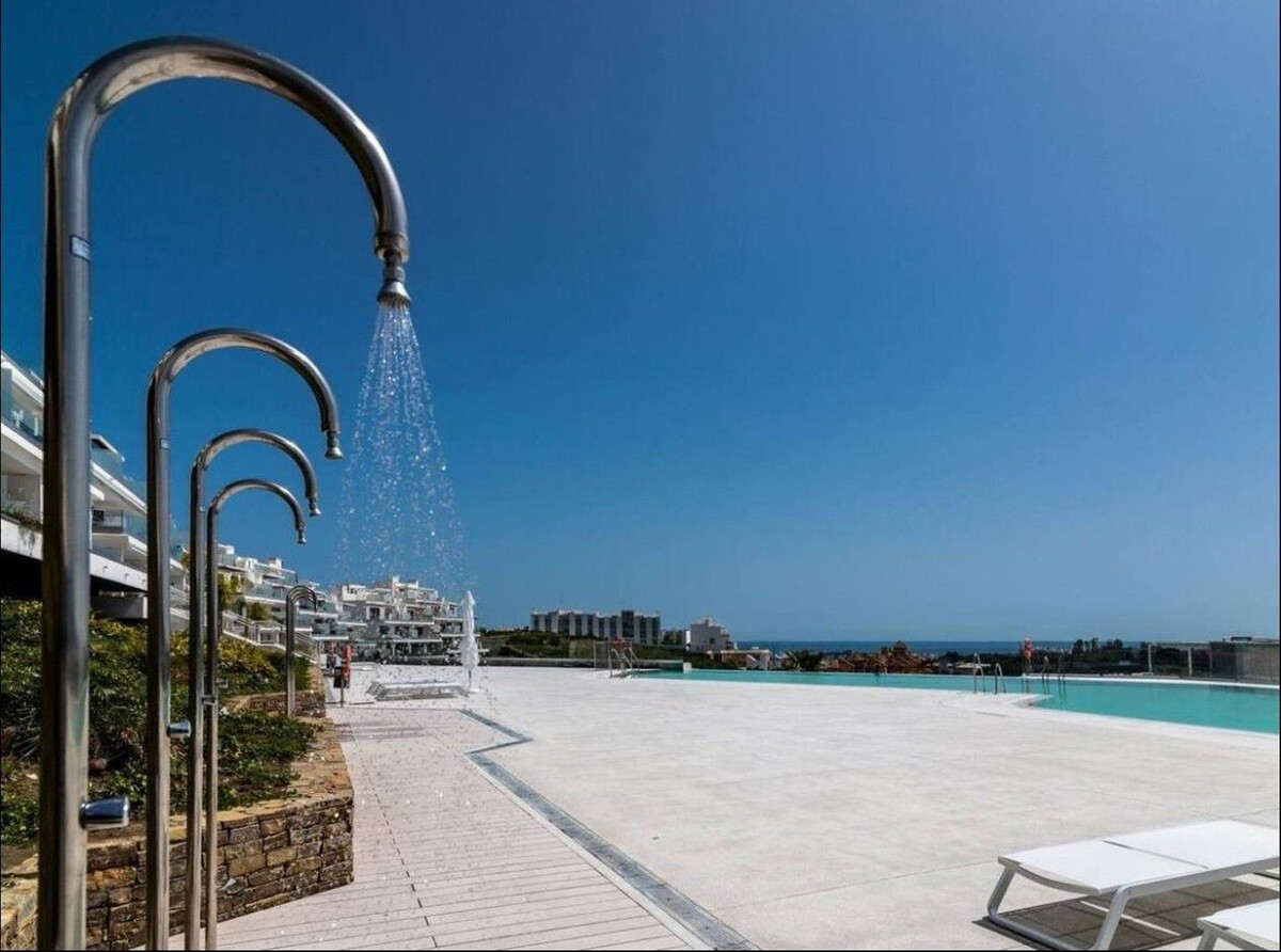 Casa adosada de nueva construcción situada en la urbanización Oceana View, en Cancelada, Estepona. Propiedad con diseño moderno, vistas al mar y a la montaña, acabados de calidad y buena ubicación. A 5 minutos en coche de la playa.