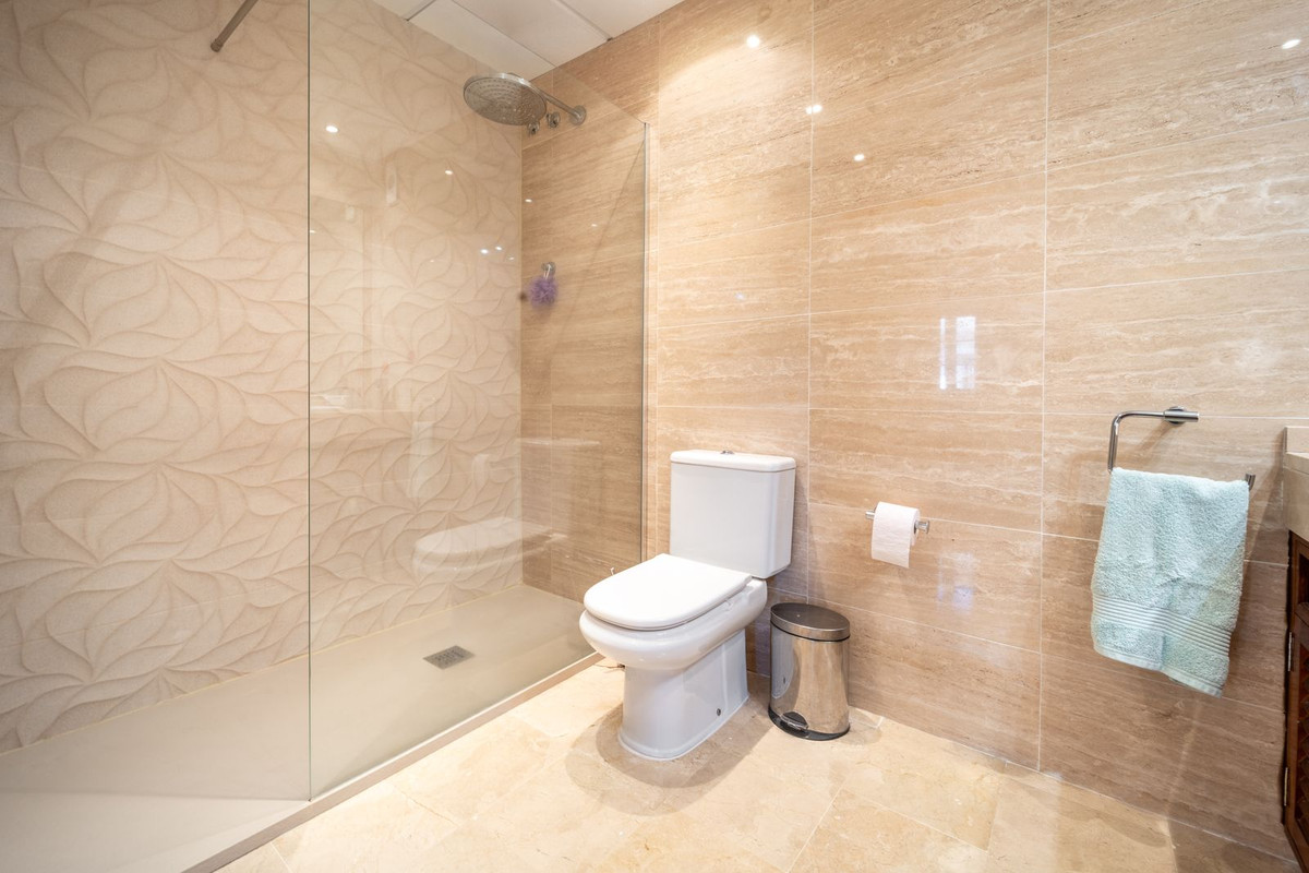 En la primera planta hay 3 amplios dormitorios, dos de ellos con baño compartido. El amplio dormitorio principal cuenta con vestidor, amplios armarios empotrados y baño en suite.