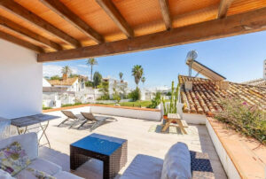 No pierda esta oportunidad única de adquirir una casa adosada en primera línea de playa en uno de los enclaves costeros más deseados de Estepona.