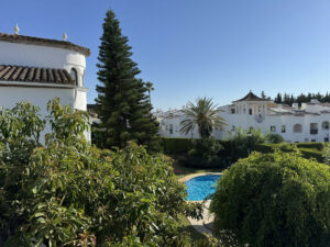 Ubicado en una de las zonas con mayor crecimiento y demanda de la Nueva Milla de Oro, este adosado de estilo andaluz ofrece una excelente combinación de tranquilidad, accesibilidad y confort. Situado entre Marbella y Estepona, en una urbanización consolidada con piscina comunitaria y amplias zonas ajardinadas, es ideal tanto como vivienda habitual como para inversión.