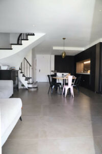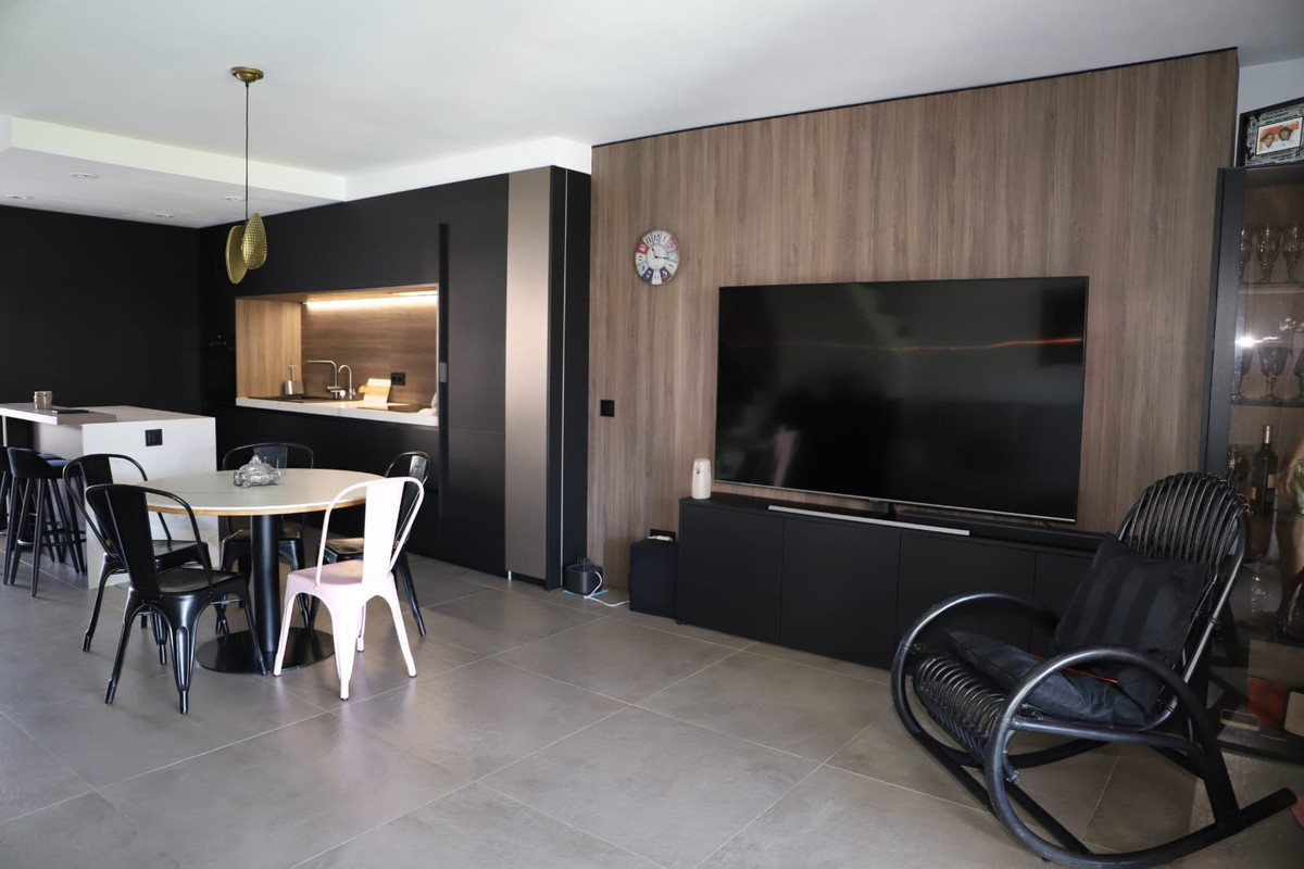 La vivienda cuenta con una superficie construida de 130m², distribuidos en tres amplios dormitorios, tres baños completos y un aseo adicional. El salón, espacioso y luminoso, dispone de chimenea y acceso directo a una terraza privada de 28m² con vistas al jardín y a la piscina comunitaria. Además, la propiedad ofrece un patio en planta baja, perfecto para disfrutar del clima mediterráneo, y un balcón que aporta mayor luminosidad y ventilación a las estancias.