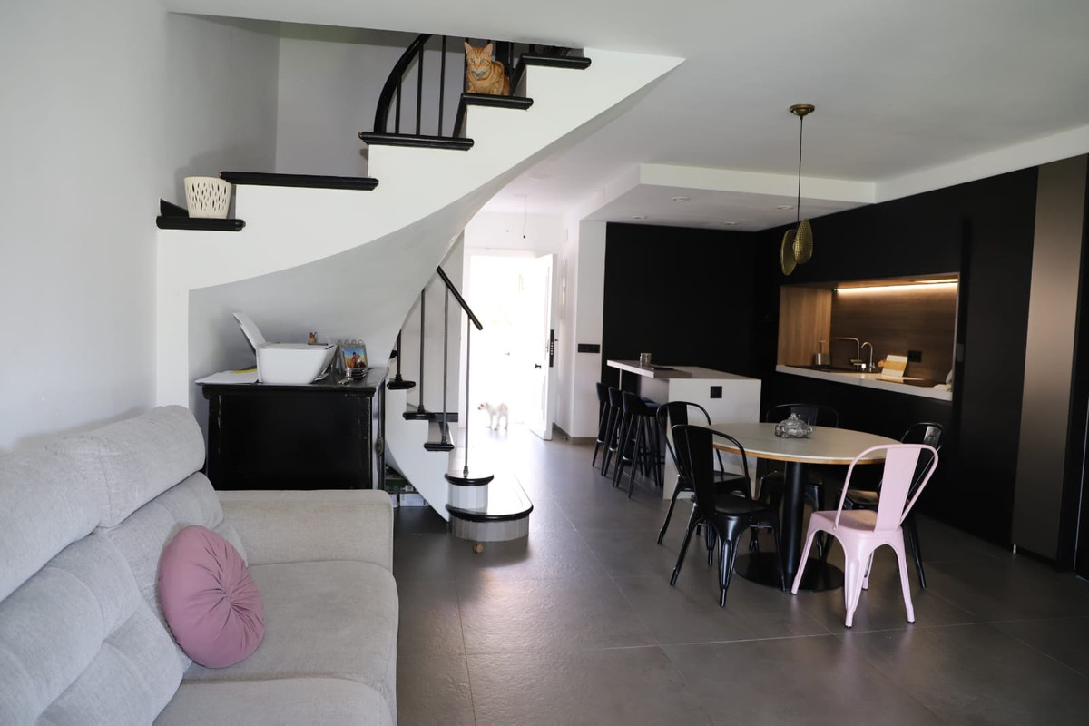 Se presenta una elegante casa adosada situada en la codiciada zona de Nueva Atalaya, en Estepona Este, Málaga. Esta propiedad destaca por su excelente ubicación, próxima a todos los servicios, transporte público, comercios, colegios y zonas de ocio, así como por su cercanía a campos de golf, playas y parques infantiles, lo que la convierte en una opción ideal tanto para familias como para quienes buscan comodidad y calidad de vida.