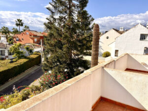 La planta superior presenta un ático versátil con su propio baño y terraza privada, ideal como dormitorio adicional, despacho o sala de juegos. Elementos de seguridad como la puerta de entrada blindada y persianas, junto con el excelente estado de la propiedad, aportan tranquilidad. Con su jardín privado, instalaciones comunitarias y ubicación inmejorable, este adosado representa una opción encantadora y práctica para quienes buscan una vivienda de calidad en la Costa del Sol.