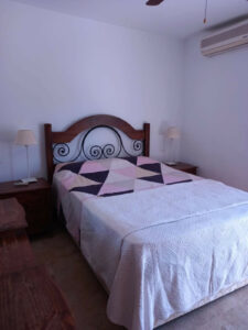 Dormitorio principal en suite con baño completo y terraza privada, más un segundo dormitorio doble con baño familiar completo.