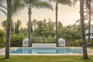 Elegante casa adosada de tres dormitorios situada en la urbanización cerrada de Agra Residencial, un encantador complejo de estilo mediterráneo de 47 amplias casas situadas junto al Campanario Golf & Country Club, en el corazón del prestigioso triángulo dorado de Estepona. Listo para entrar, esta propiedad muestra interiores luminosos y abiertos con acabados de calidad, incluyendo suelos de cerámica, armarios empotrados, baños modernos con pantallas de ducha de vidrio, y una cocina totalmente amueblada. Diseñado para vivir cómodamente, cuenta con amplias terrazas, un solárium privado y una piscina privada, perfecta para disfrutar del estilo de vida de la Costa del Sol. Destacan además aire acondicionado frío y caliente, dos plazas de aparcamiento subterráneo y acceso a hermosos jardines comunitarios y una piscina dentro de esta comunidad segura y cerrada.