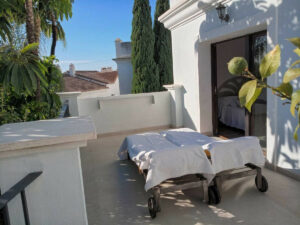 La verdadera joya de esta casa son sus tres terrazas privadas en estilo patio andaluz.