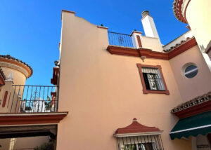 Esta vivienda de más de 130m2 ubicada en un complejo de viviendas adosadas privado en pleno centro de Estepona ofrece una ubicación privilegiada a tan solo 100 metros de la playa, lo que permite disfrutar del ambiente costero con la comodidad de tener todos los servicios alrededor.