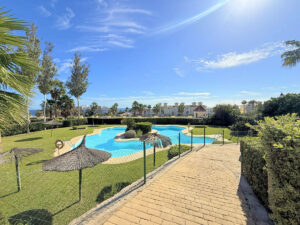Se encuentra dentro de una urbanización privada bien cuidada, que ofrece dos piscinas, de adultos y dos de niños, zonas verdes y pista de pádel.