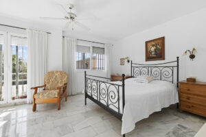 La propiedad consta de tres dormitorios bien proporcionados. El dormitorio principal se beneficia de armarios empotrados, un baño en suite y acceso directo a la terraza. Un segundo dormitorio doble también disfruta de acceso directo a la terraza, mientras que el tercer dormitorio doble es de buen tamaño. El baño familiar está equipado con bañera y ducha separada. La calefacción eléctrica se proporciona a través de un calentador eléctrico y un calentador de pared eléctrico en el pasillo.