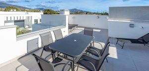 El solárium ofrece una espectacular zona de confort para disfrutar del clima mediterráneo, con punto de agua, comedor exterior, zona de barbacoa y vistas abiertas a la montaña y al mar.