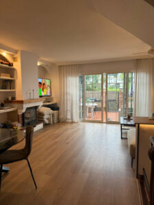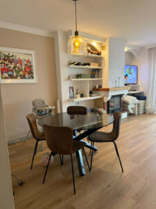 Planta principal: Luminosa, salon comedor muy amplio, con chimenea, con salida a una magnífica terraza-porche y al jardin comunitario con la piscina, ideal para tener controlados a los pequeños de la casa.