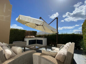 Acceso directo desde el salón a una gran terraza con zona chill out y barbacoa.