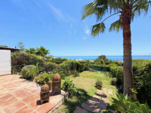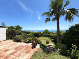 Villa pareada con licencia turística ubicada en la urbanización Bahía Dorada, en Estepona, a tan solo 400 metros de la playa y en una de las zonas más privilegiadas de la costa, con espectaculares vistas panorámicas al mar Mediterráneo y, en días despejados, a la costa.