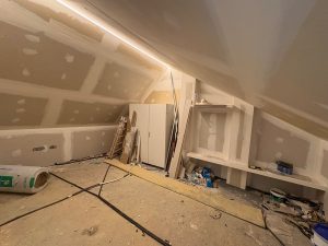 La planta superior, de aproximadamente 35 m², está sin terminar y ofrece un excelente potencial para convertirse en un dormitorio adicional, oficina o zona de ocio, aumentando aún más el valor de la propiedad.
