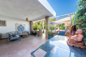 Una encantadora casa adosada de tres dormitorios en Marbella Este, esta propiedad combina la relajada vida mediterránea con una refinada estética boho-chic.