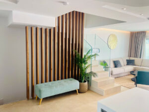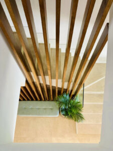 En tres plantas le espera un diseño espacioso y luminoso, ideal para familias o parejas con invitados. Uno de los aspectos más destacados es la terraza/solárium de unos 60 m². Aquí podrá disfrutar del sol, utilizar el jacuzzi o contemplar las vistas panorámicas del pintoresco paisaje montañoso mientras degusta una copa de vino. Un detalle arquitectónico es el eje visual abierto desde la planta baja hasta el ático, que confiere a la casa un ambiente especial.
