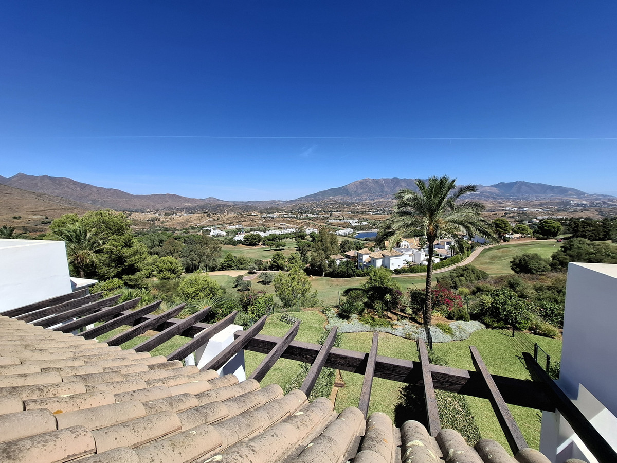 Esta casa tiene una ubicación única con un jardín enorme en el punto más alto del complejo disfruta de unas vistas abiertas al golf a la montaña y al mar, además tiene un amplio jardín para disfrutar todo el día todo el año.