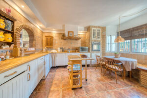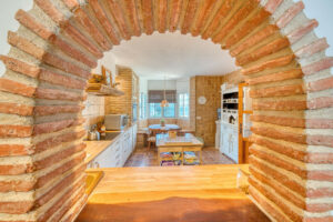 Al entrar en la primera planta, se encuentra un recibidor amplio y luminoso que da la bienvenida a la casa. A continuación, encontramos un aseo práctico y una cocina amplia y muy acogedora, equipada con todo lo necesario para cocinar y disfrutar de deliciosas comidas. La cocina cuenta con un pequeño arco que la conecta con el salón comedor, creando un espacio abierto y fluido.