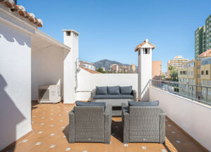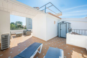 En la segunda planta, un gran solárium privado, perfecto para disfrutar del sol durante todo el año, relajarse o crear un espacio chill out.