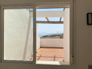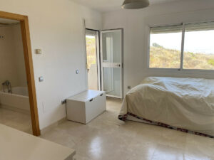 Suite de Invitados enfrente, con su propio baño, vestidor y balcón privado orientado al este con vistas a Estepona y al mar.