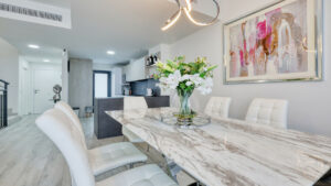 En la planta principal se encuentra un luminoso espacio de salón, comedor y cocina de concepto abierto, muy cómodo para el día a día. A la derecha de la entrada hay un aseo de invitados. Desde el salón se accede a una terraza que conecta directamente con el jardín privado, ideal para disfrutar del clima mediterráneo.