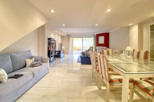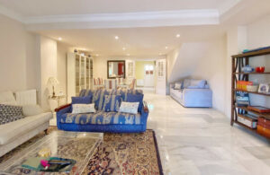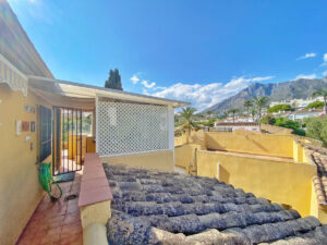 Encantadora casa adosada en esquina orientada al suroeste en venta en Marbella con vistas al mar y a la montaña.