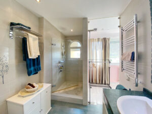 Consta de un amplio salón-comedor con chimenea y acceso directo a una hermosa terraza orientada al suroeste. La planta baja también cuenta con una cocina totalmente equipada y un aseo de invitados. En la planta superior hay 3 dormitorios y 2 baños, uno en-suite con acceso a una terraza privada y una escalera que le lleva hasta el solarium.
