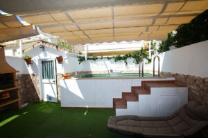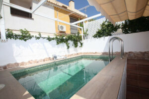 La vivienda se distribuye en dos plantas y cuenta con:3 dormitorios amplios con armarios empotrados 2 baños completos y 1 aseo de cortesía, Salón-comedor luminoso, con acceso directo al exterior, cocina moderna totalmente equipada,pequeña piscina privada, ideal para refrescarse en verano, zona de barbacoa y terraza perfecta para disfrutar al aire libre.