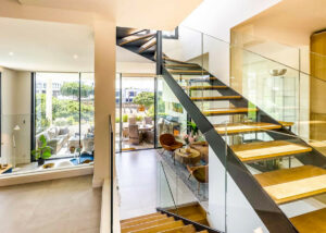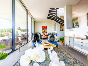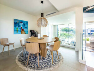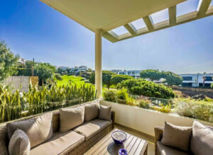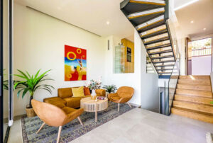 Este adosado de diseño arquitectónico forma parte de la prestigiosa urbanización The Cape en Cabopino, Marbella Este. Con una posición privilegiada en primera línea de golf y a solo 800 m de la playa y el puerto deportivo de Cabopino, la vivienda combina tranquilidad, confort y un diseño moderno de inspiración escandinava.