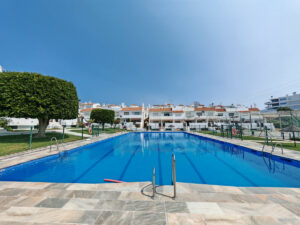 Pareado en venta en , Mijas Costa con 3 dormitorios, 2 baños, 1 aseo y con orientación sur, con piscina comunitaria y jardín comunitario. Respecto a las dimensiones, la propiedad presenta 147 m² construidos, 104,4 m² de parcela, 74,4 m² en interior y 73 m² de terraza. Tiene las siguientes características servicios cercanos, transporte cercano, aire acondicionado, cocina totalmente equipada, chimenea, sala de invitados, solarium, aseo para invitados, terraza privada, vistas al mar, rejas, armarios empotrados, comunidad cerrada, vistas al jardín, vistas a la piscina, pista de tenis / pádel, vistas a la calle, parque infantil cercano, cerca de playa / mar, cerca del golf, balcón, buen estado, para reformar, vistas urbanas, tiendas cerca, colegios cerca, apartamento de invitados, azotea y cerca de restaurantes.