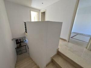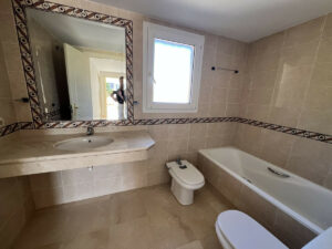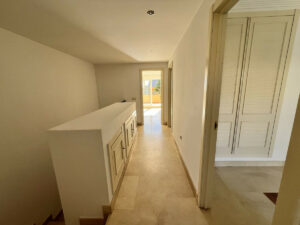 En la planta alta se ubica el dormitorio principal, que cuenta con terraza privada y un amplio baño en suite con bañera y ducha. En esta misma planta hay dos dormitorios adicionales y un segundo baño completo con bañera.