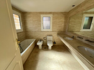 En la planta baja se encuentra un amplio salón comedor con excelente entrada de luz natural, cocina independiente con posibilidad de integrarse al salón mediante una pequeña reforma, aseo de cortesía y lavadero independiente. La vivienda dispone de aire acondicionado centralizado y suelos de mármol.