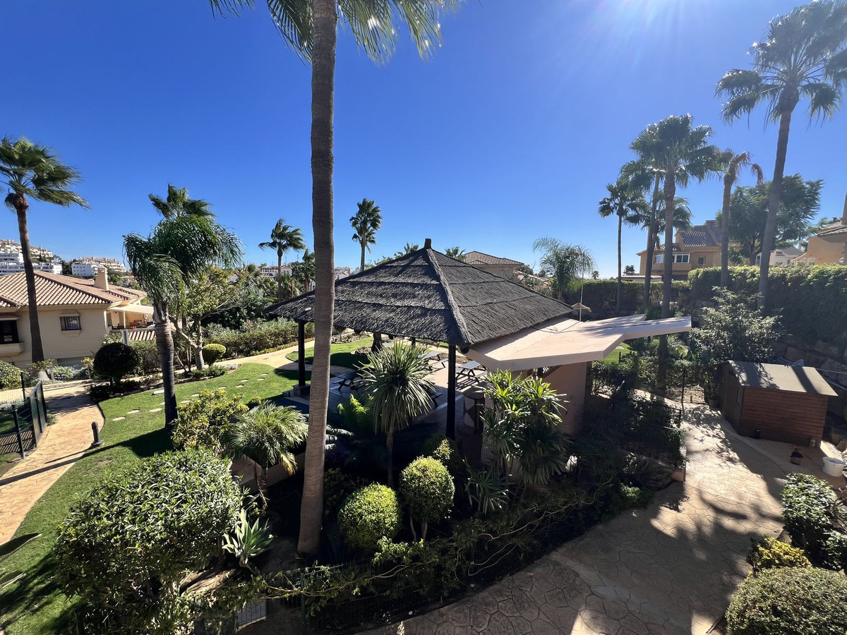 Las zonas comunes incluyen dos piscinas, una de ellas abierta todo el año, y zona de barbacoa con mesas. El mantenimiento del jardín está incluido en los gastos de comunidad.