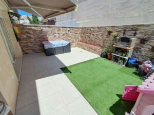 En esa misma planta la vivienda ofrece cocina completa con acceso al patio, 1 baño y 1 dormitorio doble con su terraza privada.