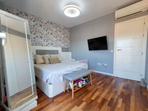 Planta baja: Desde la entrada damos paso a un trastero a mano izquierda y a mano derecha al primer dormitorio de la vivienda, perfecta para usar como oficina o dormitorio.