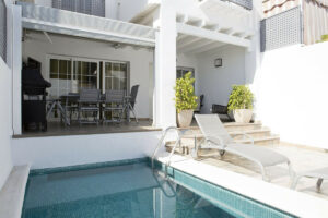 En El Condal, Nerja, se encuentra esta amplia casa adosada con piscina privada. Es una propiedad cómoda y práctica, con espacios bien aprovechados y varias zonas para disfrutar tanto dentro como fuera de la vivienda.