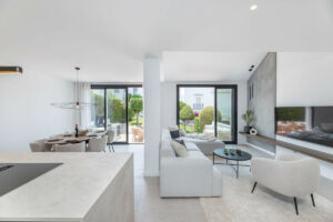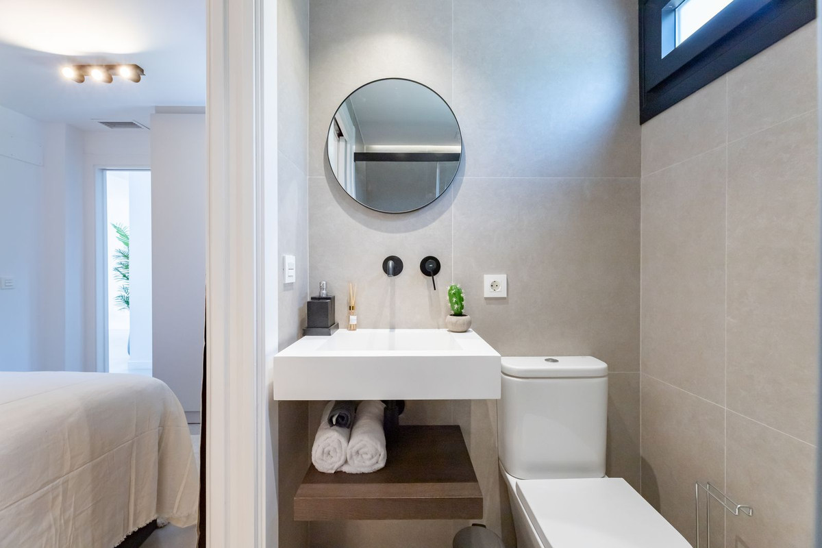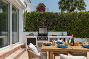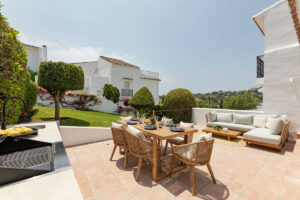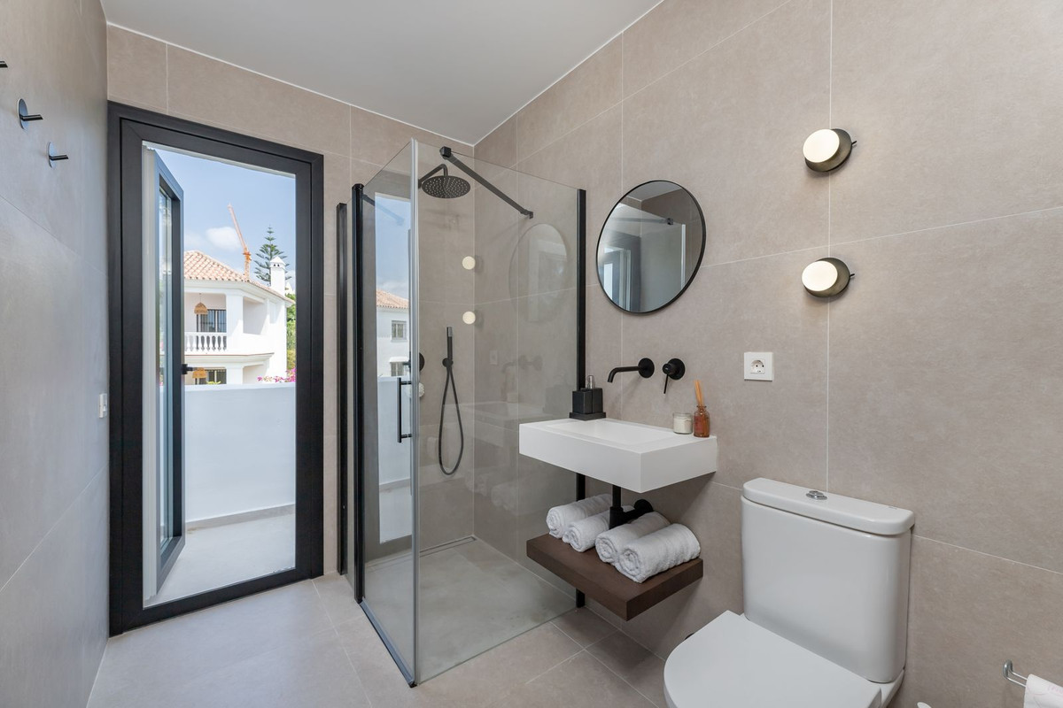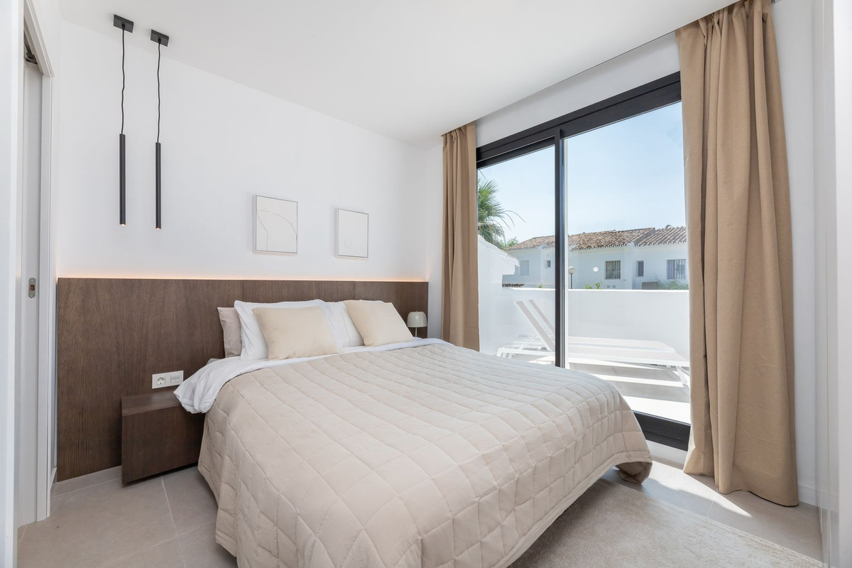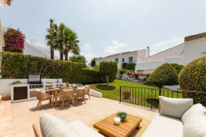 Esta moderna casa adosada de 3 dormitorios es luminosa y se distribuye en 2 plantas. La planta baja cuenta con un diseño de concepto abierto, con una cocina totalmente equipada, un amplio salón y un comedor. Grandes puertas correderas dan acceso a una terraza privada con barbacoa, comedor exterior y zona de estar, ideal para disfrutar del estilo de vida de Marbella todo el año. En esta planta también se encuentra un aseo de invitados y un dormitorio con baño en suite.