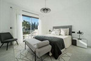 Ubicada en la codiciada zona de Los Pinos de Aloha, esta elegante casa adosada ofrece tres dormitorios, cuatro baños y una luminosa orientación sur con acceso directo a la piscina comunitaria. El estilo renovado es elegante, minimalista, limpio y moderno.