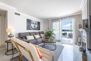 Ubicada en el centro neurálgico de Nueva Andalucía, la propiedad está rodeada de una amplia selección de restaurantes, cafeterías, bares y servicios esenciales, todo a pocos pasos. El histórico Casco Antiguo de Marbella se encuentra a solo 5–10 minutos en coche, mientras que el Aeropuerto Internacional de Málaga está aproximadamente a 45 minutos en coche, lo que la convierte en una propiedad ideal como residencia permanente, casa de vacaciones o inversión. Esta vivienda ofrece lo mejor de ambos mundos: paz y tranquilidad con vistas serenas a La Concha, a la vez que está a pocos pasos del vibrante estilo de vida de Puerto Banús.