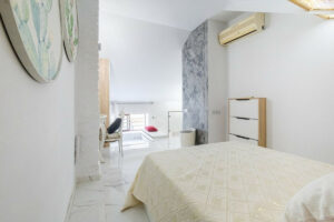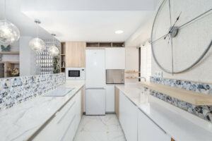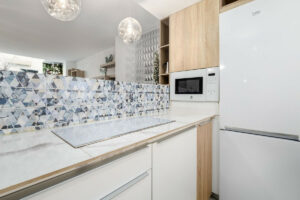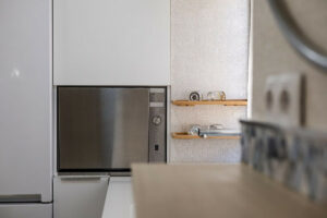 Dispone de 3 dormitorios todos con armarios empotrados (2 dobles y uno individual) con 2 baños completos ambos con duchas de hidromasaje y sanitarios de diseño, tiene un gran salón-comedor que integra una maravillosa cocina americana con encimera de Silestone blanco y muebles de la prestigiosa marca Xey (con cajones y carros extraibles).