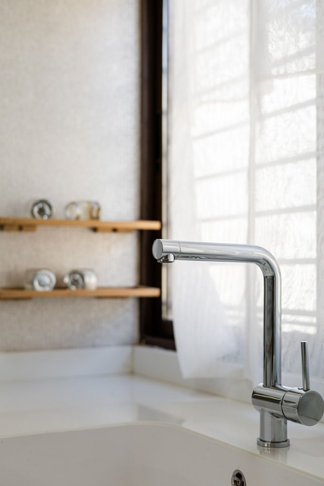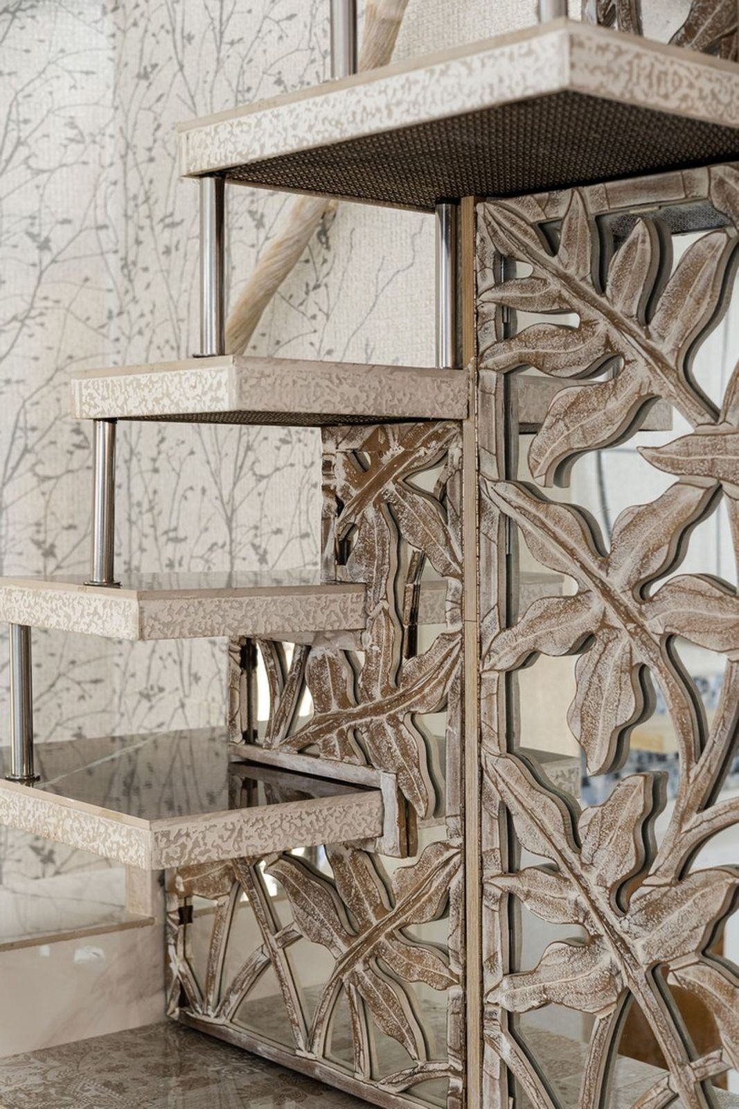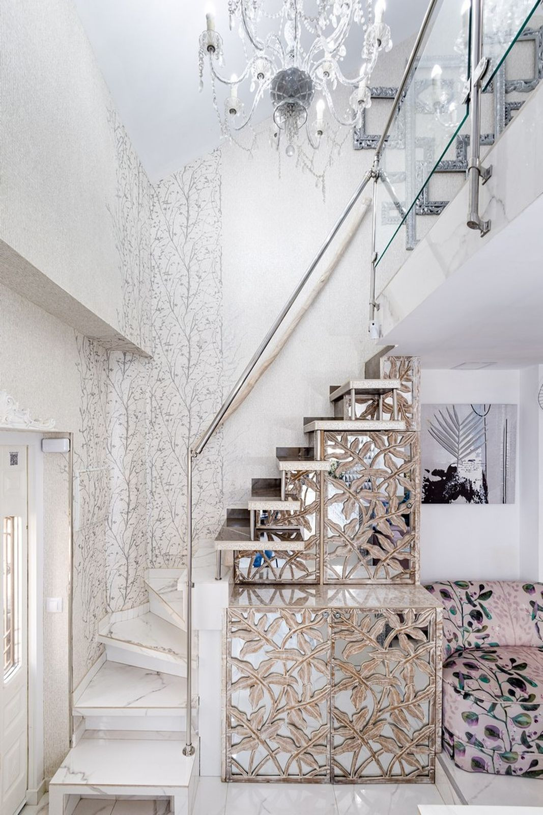 La casa tiene dos plantas de aproximadamente 50 metros cada una, es muy luminosa y abierta, tiene puertas y ventanas lacadas en blanco, suelos porcelánicos de alto brillo y una terraza en la planta superior.