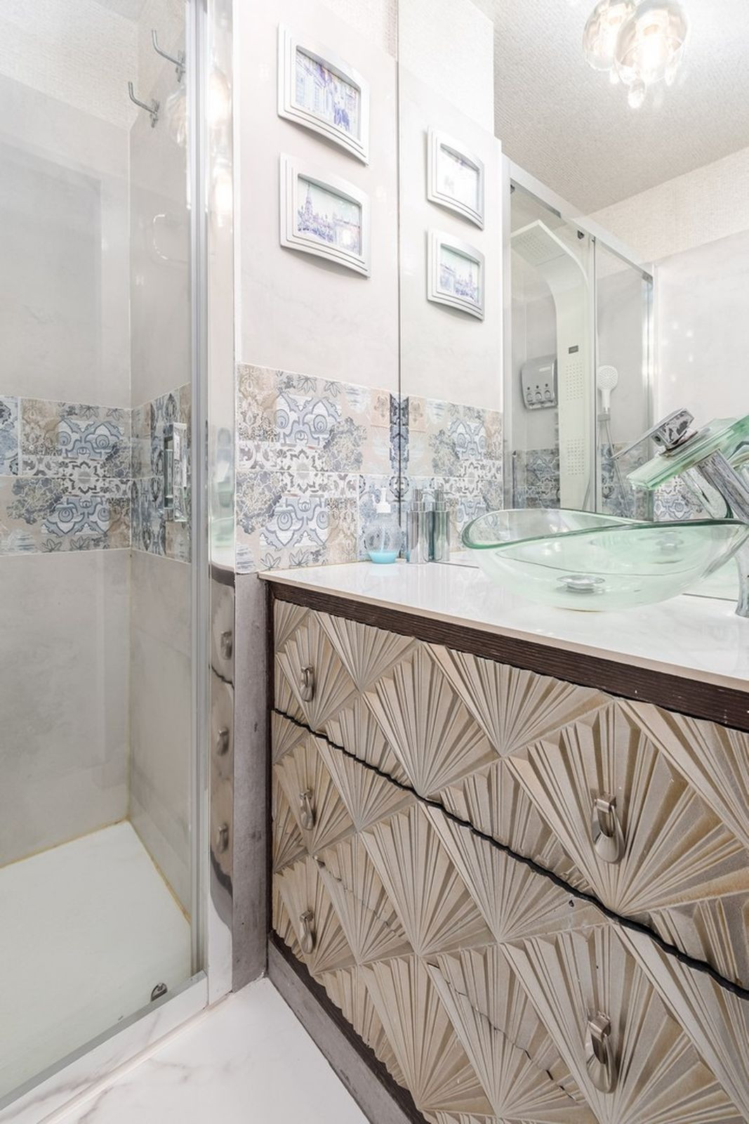 Dispone de 3 dormitorios todos con armarios empotrados (2 dobles y uno individual) con 2 baños completos ambos con duchas de hidromasaje y sanitarios de diseño, tiene un gran salón-comedor que integra una maravillosa cocina americana con encimera de Silestone blanco y muebles de la prestigiosa marca Xey (con cajones y carros extraibles).