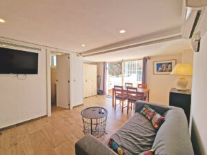 En la planta baja, con acceso independiente desde la entrada principal, encontramos un espacio habilitado como apartamento autónomo, ideal para rentabilidad mediante alquiler turístico (dispone de licencia en vigor) o como alojamiento para familiares y visitas. Esta planta cuenta con un dormitorio, baño completamente reformado y un agradable patio soleado orientado al sur, perfecto para disfrutar del clima privilegiado de la Costa del Sol durante todo el año.