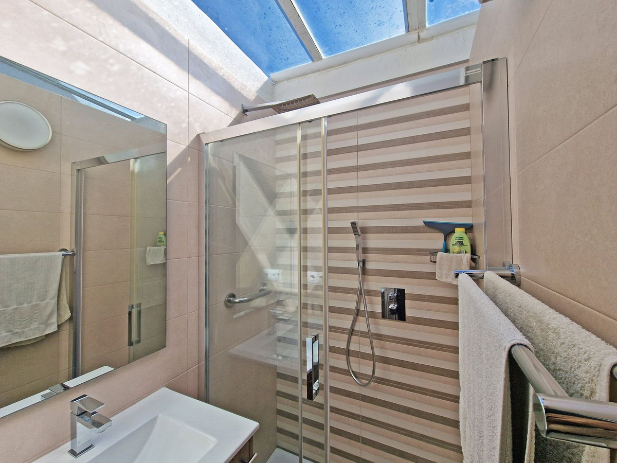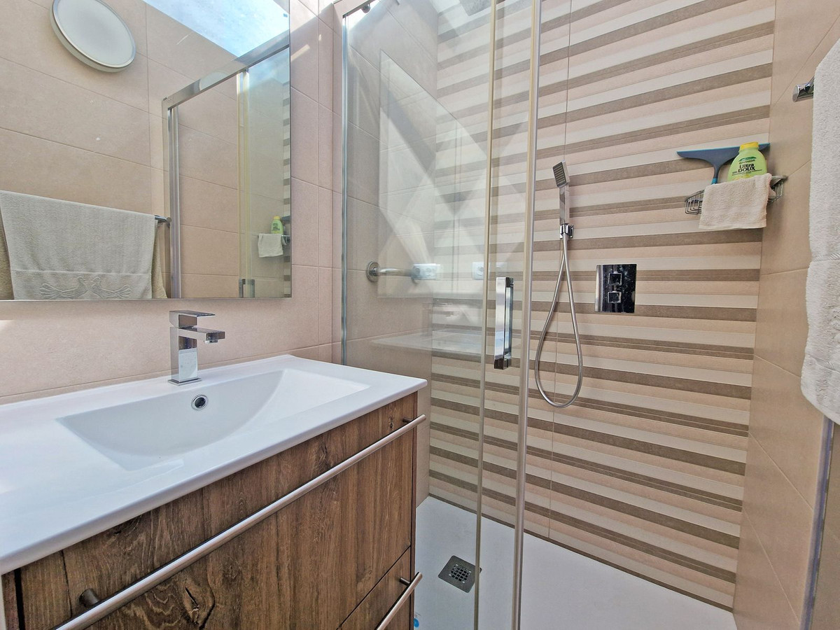 En la planta baja, con acceso independiente desde la entrada principal, encontramos un espacio habilitado como apartamento autónomo, ideal para rentabilidad mediante alquiler turístico (dispone de licencia en vigor) o como alojamiento para familiares y visitas. Esta planta cuenta con un dormitorio, baño completamente reformado y un agradable patio soleado orientado al sur, perfecto para disfrutar del clima privilegiado de la Costa del Sol durante todo el año.