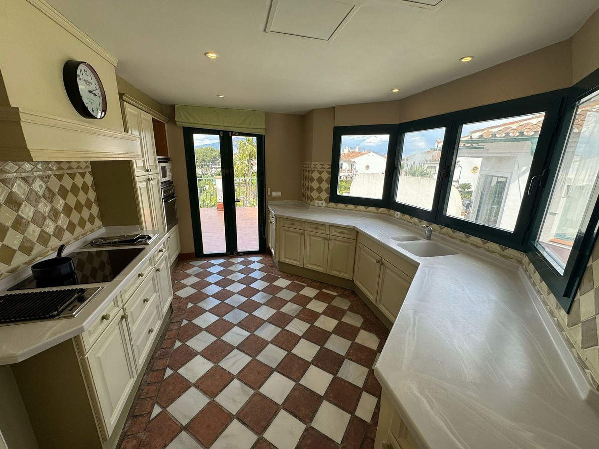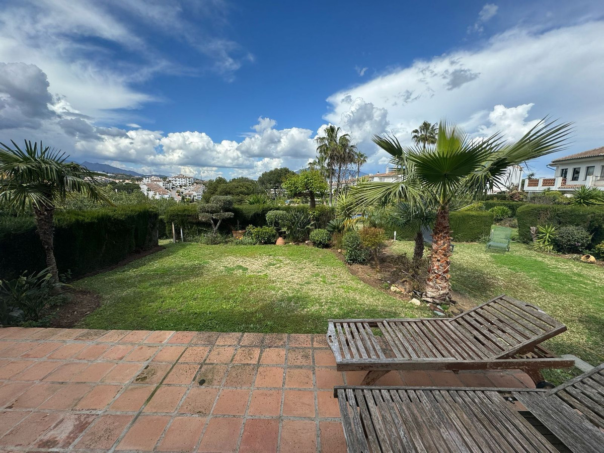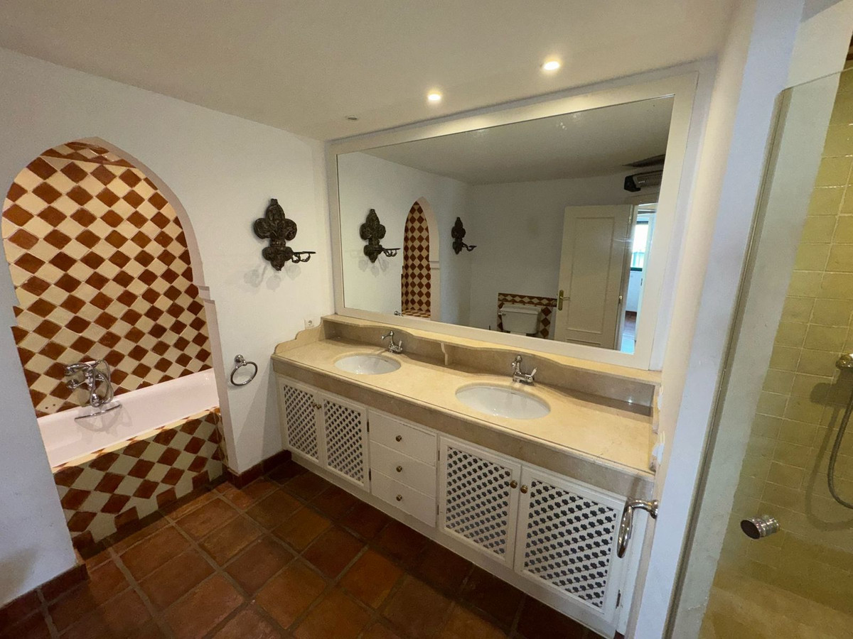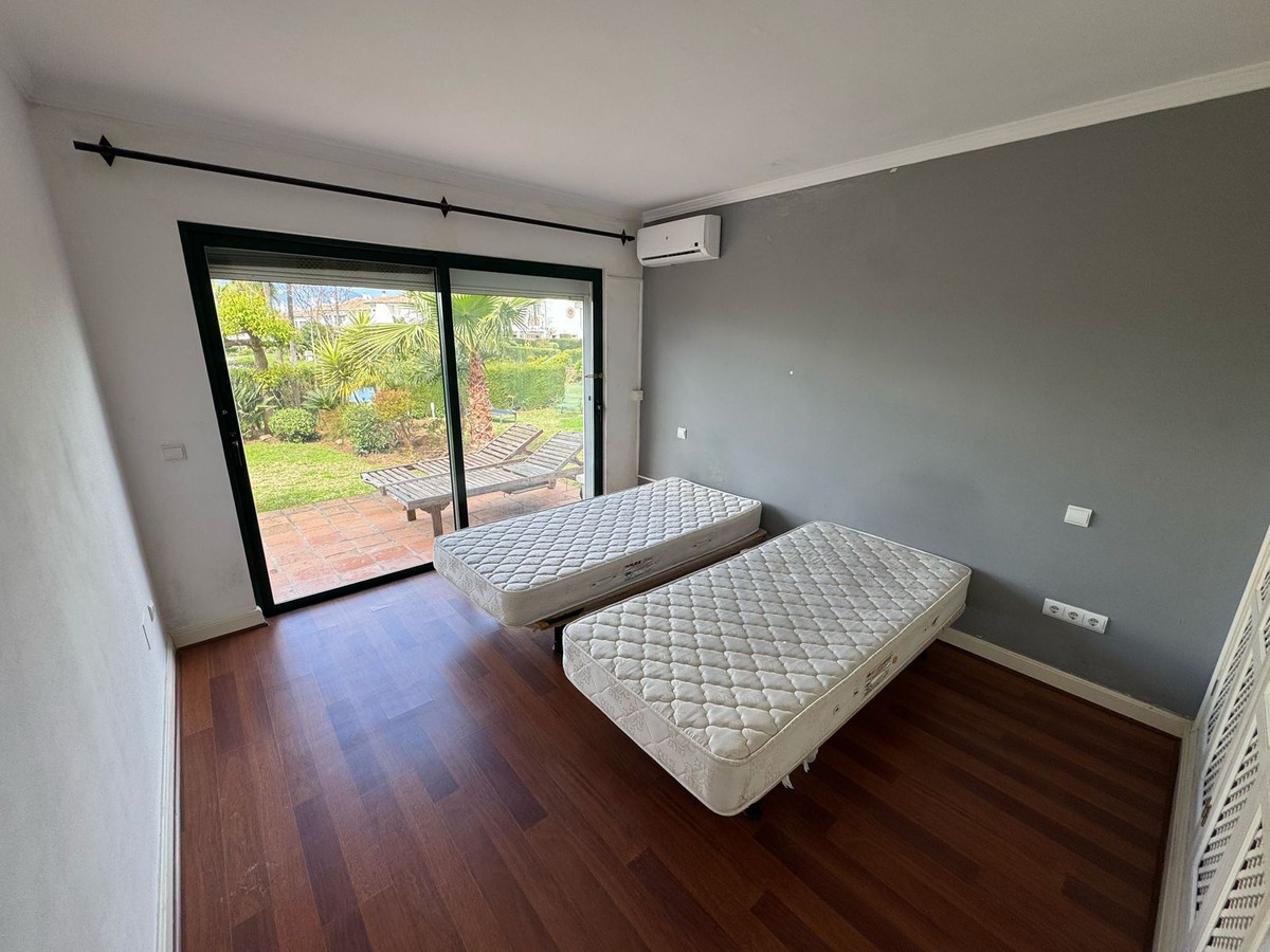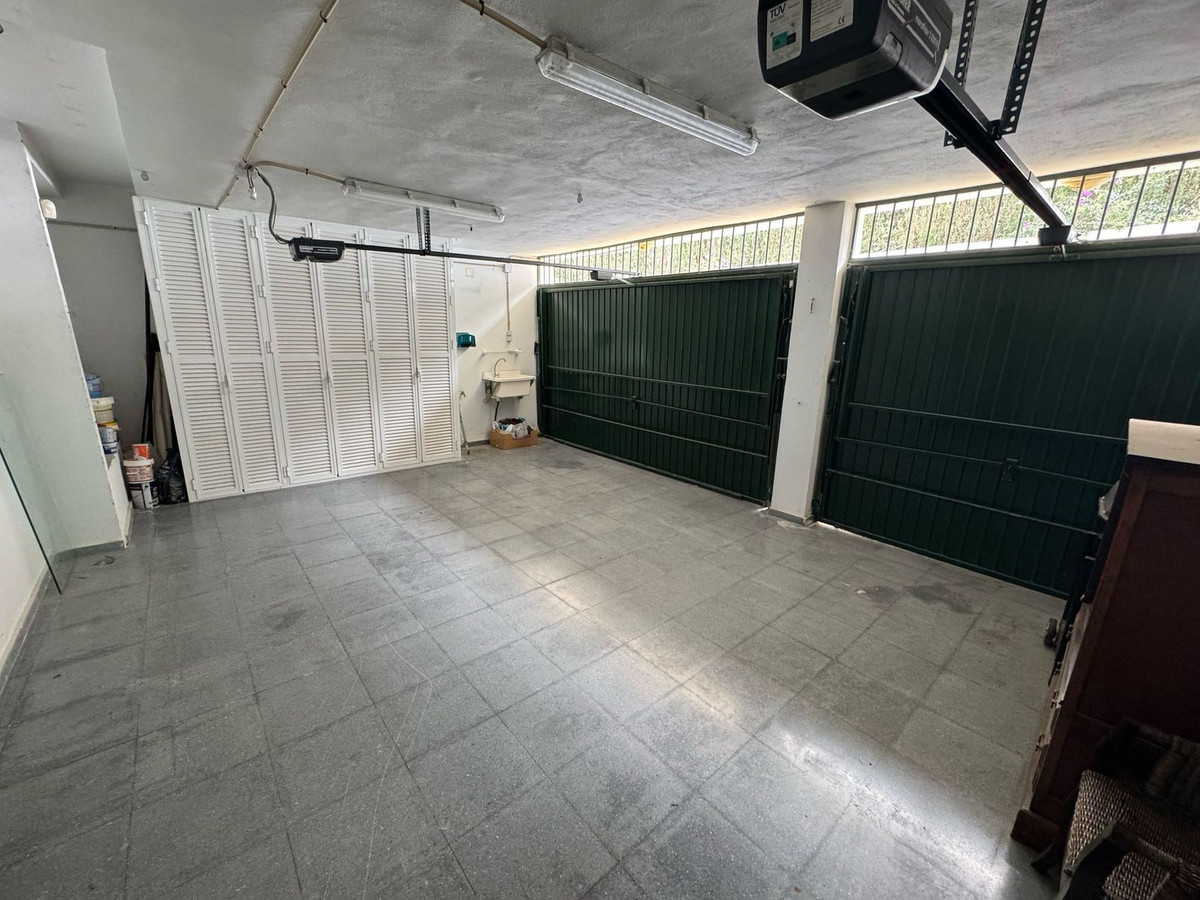 La planta inferior alberga la suite principal con salida a un jardín privado, dos dormitorios para invitados y acceso al garaje doble privado. Otras características incluyen una cocina totalmente equipada, aseo de cortesía, aire acondicionado frío/calor, persianas eléctricas y armarios empotrados. Una excelente oportunidad de reforma en una tranquila y bien comunicada comunidad residencial.