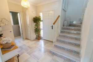 Orientada al suroeste, impecablemente presentada, villa adosada de 3 dormitorios dobles con vistas al Mediterráneo desde la planta superior, situada en una pequeña comunidad muy bien cuidada. La propiedad se encuentra en excelentes condiciones, ya que ha sido recientemente redecorada en su totalidad. Esta hermosa casa ofrece amplias zonas de estar interiores, terrazas exteriores en la planta superior e inferior y una zona ajardinada para disfrutar del aire libre. Al entrar en la propiedad, un acogedor vestíbulo conduce a un amplio salón con chimenea, comedor, cocina moderna totalmente equipada y con luz natural, con una zona de lavandería exterior. El salón da a una amplia terraza inferior (la más grande de la comunidad) y al jardín, que también cuenta con un trastero. La planta superior consta del dormitorio principal con un amplio cuarto de baño en suite con calefacción por suelo radiante y bañera de hidromasaje. El dormitorio principal da a una terraza superior con preciosas vistas al mar. Dos dormitorios dobles adicionales y un cuarto de baño adicional completan esta planta. El dormitorio principal da a una terraza superior con preciosas vistas al mar. La propiedad también cuenta con su propia reserva de agua en caso de escasez. Situada en una comunidad pequeña y acogedora, muy bien cuidada, de solo 18 propiedades, con una maravillosa piscina principal y otra infantil compartidas. Esta magnífica propiedad es ideal tanto como casa de vacaciones como para vivir todo el año. Esta propiedad, un verdadero hogar lejos de casa, hay que verla. El servicio de autobús local para al final de la calle, lo que facilita el transporte. Riviera del Sol forma parte de Mijas, a medio camino entre Marbella y Fuengirola, a unos 25 minutos del aeropuerto de Málaga. Se trata de una zona residencial consolidada con mucha actividad comercial, bares, restaurantes y magníficas instalaciones deportivas, situada junto al campo de golf de Miraflores. Es una zona residencial muy popular de Mijas Costa, debido a su excelente ubicación, su fácil acceso a Marbella y Fuengirola, sus excepcionales campos de golf, sus hermosas playas y su amplia oferta de bares y restaurantes.