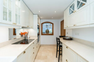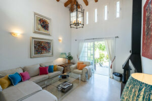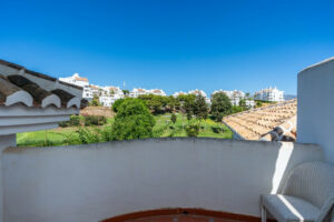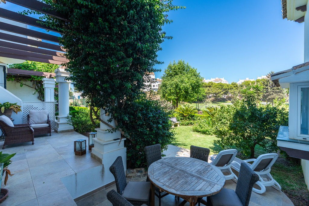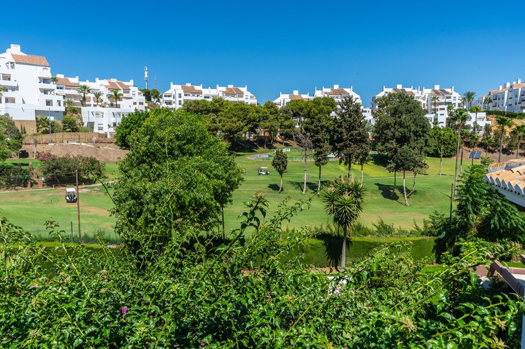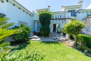 Preciosa casa adosada en un pequeño complejo en Riviera del Sol, Mijas-Costa, en primera línea de golf. La casa ofrece en la planta principal una cocina moderna totalmente equipada, un aseo de invitados, trastero, un dormitorio con baño en suite y un amplio salón-comedor con chimenea y acceso a la terraza privada con jardín privado. En la primera planta hay dos dormitorios más con baños en suite y una encantadora terraza de verano. También hay una azotea con sol todo el día. En el sótano hay una amplia zona que podría convertirse en una sala de cine, gimnasio, más dormitorios, etc. Tanto delante de la casa como dentro del complejo hay una plaza de aparcamiento privada. La casa se encuentra en impecables condiciones y en una excelente ubicación, junto al campo de golf y a poca distancia de restaurantes y tiendas. La playa está a 15 minutos a pie. Complejo cerrado muy bien cuidado con dos piscinas y jardines.