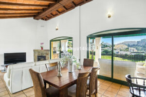 – Amplio Salón-Comedor: De generosas dimensiones, con una acogedora chimenea y amplios ventanales que enmarcan las impresionantes vistas al campo de golf.