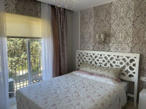 • Segundo dormitorio con ventana panorámica y salida a un balcón con vistas a colinas verdes.