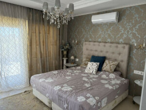 3. Interior sofisticado: muebles italianos de madera natural, suelos de mármol, lámparas de cristal y espejos decorativos crean una atmósfera de refinada elegancia.